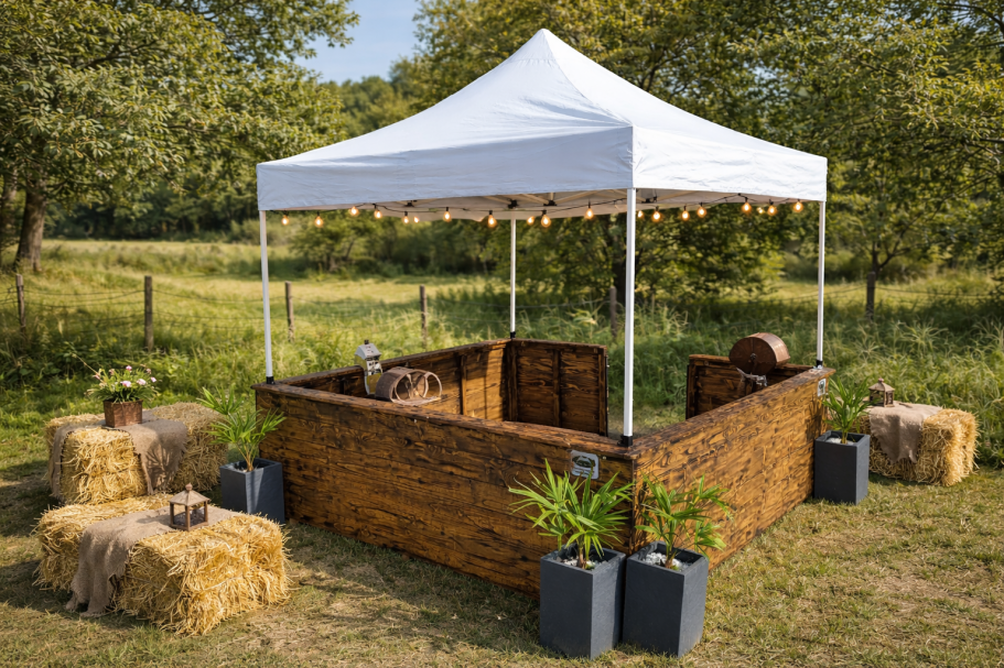 Apportez une vraie ambiance avec notre bar en bois style authentique pour accueillir et servir vos invités dans un cadre convivial et festif!